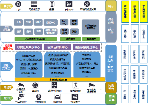 視綜智能防控平臺以實現“基礎信息化、警務實戰化、執法規范化”為目標,圍繞“服務”的理念進行總體設計,以社會網、視頻專網和公安內網三張網為基礎,進一步拓展圖像信息在公安業務中的應用廣度和深度,提升公安機關核心戰斗力,為指揮調度、預防打擊違法犯罪、維護社會穩定提供有力的信息支撐,基于視圖大數據分析技術創新情指巡一體化工作機制。